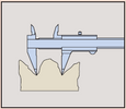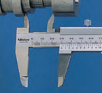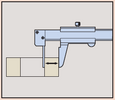 Példa: Tegyük fel, hogy a mozgópofa billenése 50 mm-en 0.01 mm és a külső mérőpofa hossza 40 mm. Ekkor a mérőpofa végén számítható hiba (40/50)x0.01 mm = 0.008 mm. Kopott vezetőfelület esetén a hiba akkor is fennáll, ha az alkalmazott mérőerő megfelelő is.