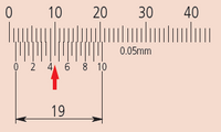| Standard nóniusz skála (osztás 0.05 mm) |