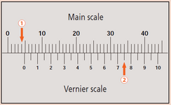 A pontos méretleolvasás az alapskála és nóniusz skála egy vonalba eső helyén történik.