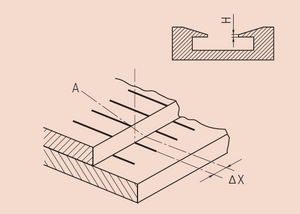 Ha a nóniusz skála megfigyelési iránya (A), a leolvasáskor X értékű torzítás keletkezik, amely hatása a (H) vastagság függvénye. Az így leolvasott méret hibás.