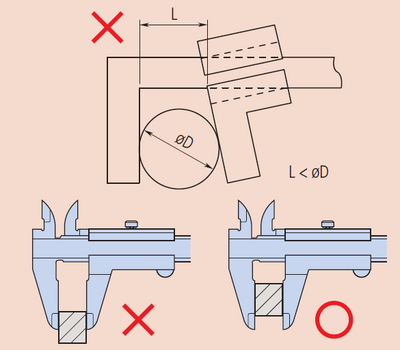 Tehát, ügyeljünk arra, hogy ne használjunk nagy mérőerőt a mérés során, amely a külső méret mérésénél fejti ki legkedvezőtlenebb hatását amikor a külső pofa legkülső pontja érinti a mérendő felületet.
