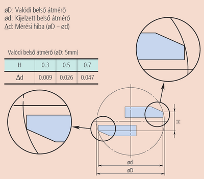 Mivel a belső átmérő mérése a mérőcsőr végén valósítható meg, annak párhuzamossága - amely igen erősen mérőerő függő - igen nagy hatással van a mérés pontosságára.